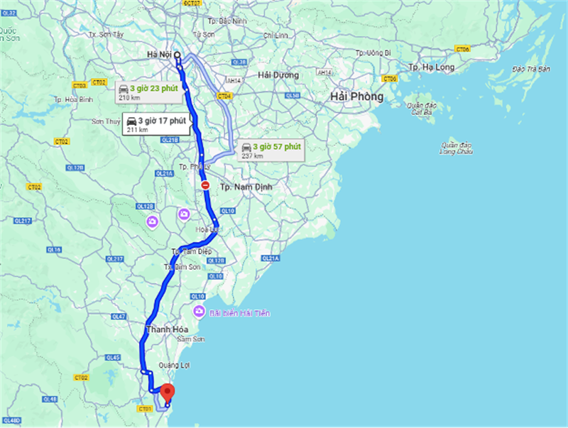 Từ Hà Nội đến Hải Hòa, quãng đường khoảng 200 km thường đi qua Quốc lộ 1A, với vài đoạn nhỏ dẫn vào Tĩnh Gia, Thanh Hóa. Cung đường này mang đến trải nghiệm thú vị với cảnh sắc thay đổi liên tục.